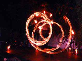 Mit "Dancing Flames" bietet Theater Unglaublich den idealen Hintergrund für kleine Feiern und festliche Anlässe. Hochzeiten, Geburtstage und Vernissagen werden von dieser 20-minütigen Feuershow optimal begleitet. Eine kraftvolle Artistik mit Fackelstock, Kettenfackeln (Pois) und dem "Planeten" wird durch das Fackelrad und klassisches Feuerspucken ergänzt.